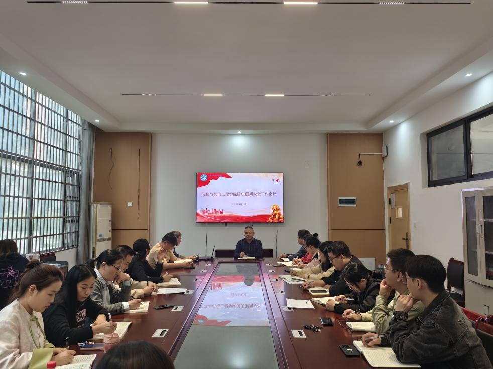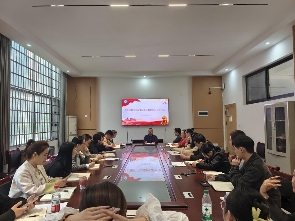 此次会议进一步统一了思想,明确了任务,为国庆假期期间学院安全稳定工作奠定了坚实基础。信息与机电工程学院将继续以高度的责任感和严谨的工作态度,全力保障师生度过一个平安、祥和、愉快的假期。