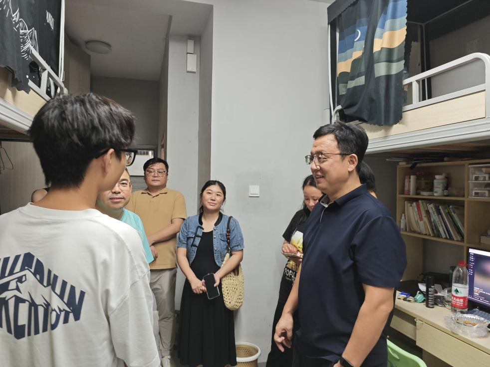 为精准掌握学生发展动态,鼓励毕业生考研考公,10月8日晚学校副校长、信息与机电工程学院院长褚颜魁、信息与机电工程学院党总支书记唐志文、西四宿舍楼栋有关辅导员老师一行,来到西四栋毕业生宿舍,走访慰问正在紧张备战考研、考公的学子们,为他们送去学院的关怀与殷切期望。
