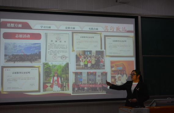 通信2301钟萍以极具代表性的成长故事 引发了强烈共鸣。他深情回顾了从一名懵懂的“编程新手” 起步,历经无数个日夜的代码调试、算法打磨和理论钻研,最终荣获“涉外杰出青年”。他以亲身经历勉励学弟学妹们:唯有在专业领域的沃土上深耕不辍,以不懈的专注力与探索精神浇灌,方能叩开创新之门,抵达理想的彼岸。 这段充满韧性与热忱的经历点燃了在场学生的奋斗激情。