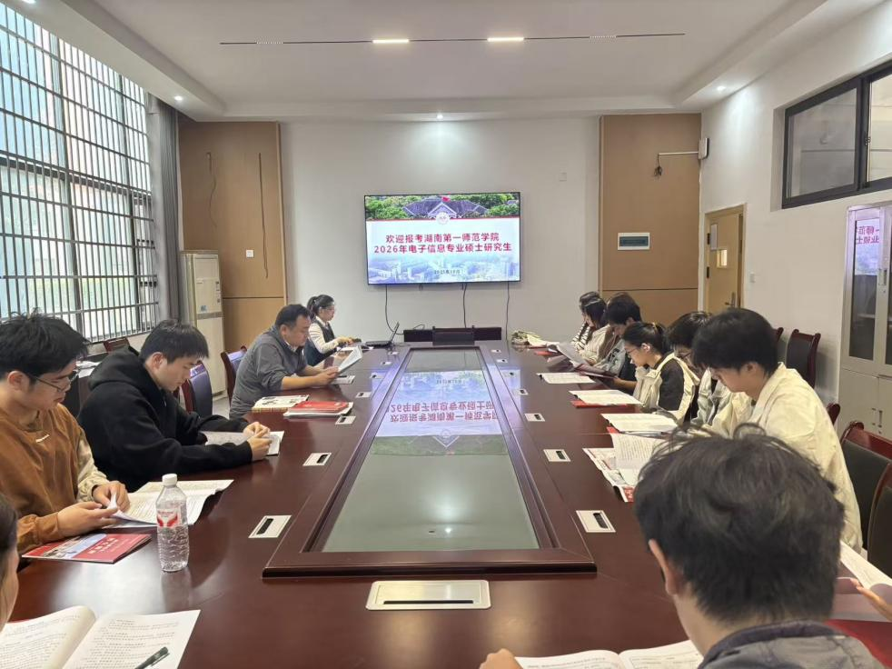 10月16日上午,湖南第一师范学院智能制造学院副院长蔡颂教授来到湖南涉外经济学院信息与机电工程学院,在8-108会议室举行考研宣讲交流会。会议伊始,我院唐志文书记发表讲话,鼓励同学们积极把握升学机会。唐书记指出,在当前就业环境变化、职业发展形势日趋复杂的背景下,攻读硕士学位对于工科学生提升就业竞争力、拓宽未来发展路径具有显著好处,是应对挑战、实现个人成长的重要途径。