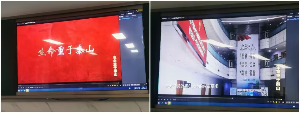 随后与会人员一起观看了《生命重于泰山》电视专题片。