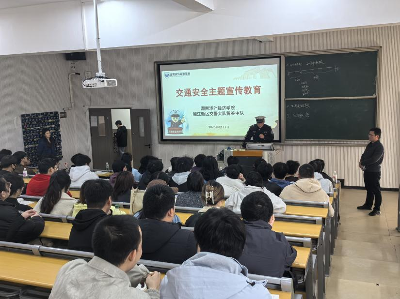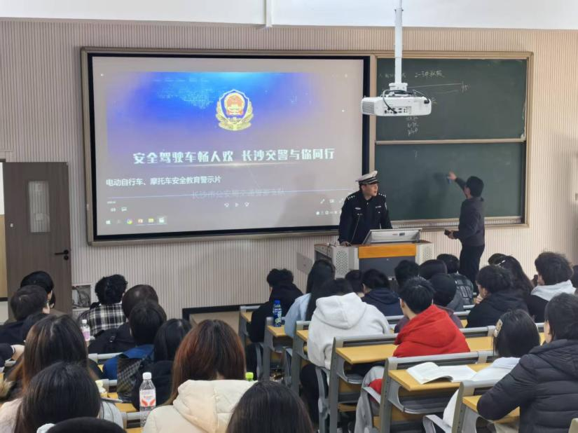 为进一步增强师生交通安全意识,提升自我防护能力,有效预防和减少道路交通事故发生,3月11日,学校保卫处联合湘江新区交警大队麓谷中队在信息与机电工程学院7教205教室开展交通安全主题宣传教育活动。学院师生代表齐聚一堂,共同学习交通安全知识,筑牢校园安全屏障。