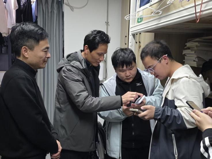 检查过程中,夏武科处长一行逐间走访学生宿舍,重点对反诈工作落实情况进行细致核查。检查人员详细了解学生对电信网络诈骗常见手段的掌握情况,现场查看国家反诈中心APP安装及预警功能开启情况,询问学生是否接到可疑来电、信息及链接等。夏武科处长结合近期校园典型诈骗案例,深入剖析诈骗套路与作案手法,提醒全体学生时刻保持警惕,牢记反诈“四不”原则,自觉远离各类诈骗陷阱,守好个人财产安全。