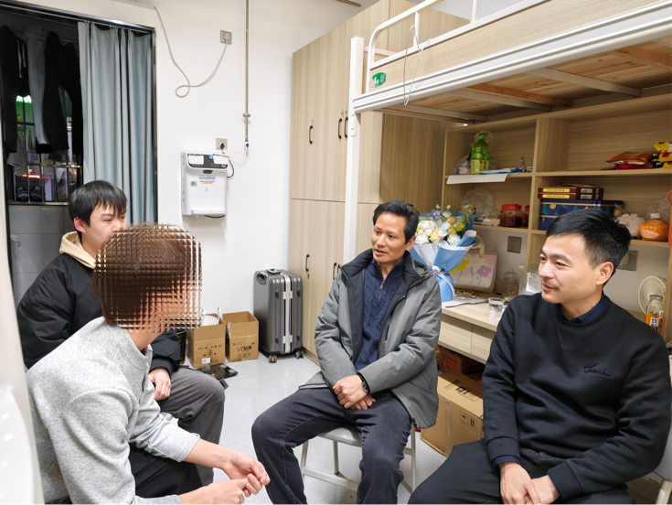 针对常态化反诈工作,夏武科处长对辅导员提出明确要求,要切实履行管理与育人职责,将反诈宣传融入日常学生教育管理,持续开展反诈知识普及,常态化排查安全风险隐患,确保反诈宣传全覆盖、无死角,推动“无诈校园”建设走深走实。走访期间对学院重点学生细致询问其思想动态、学习生活状况与实际困难,耐心倾听学生诉求,鼓励大家保持积极心态,勤奋学习、健康成长。