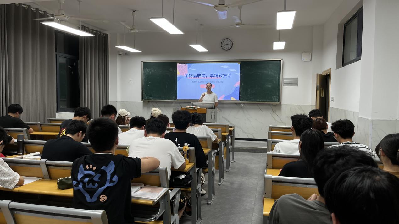 班会现场,辅导员首先介绍了日常物品收纳的必要性,如收纳可以提高空间利用率,让居室更加干净整洁,减少寻找物品的时间等。紧接着,又从衣物、鞋子、被子等不同物品类别入手,分别分享了收纳技巧和心得体会。如衣物的分类整理以及如何选择适合整理的工具。