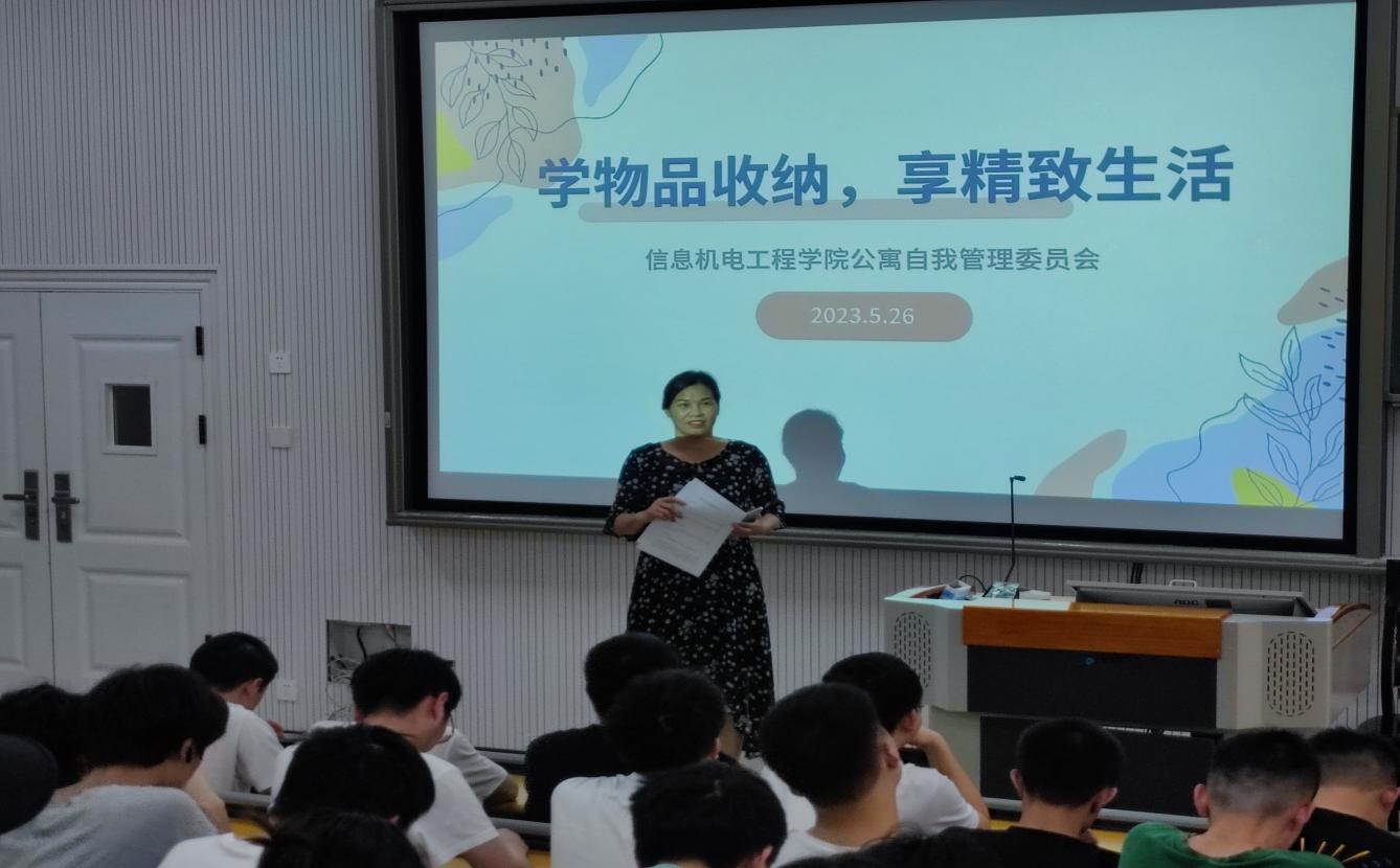 为更加深入落实学校党建工作进宿舍工作实施办法,信息与机电工程学院继开展寝室物品收纳大赛之后,由学院公寓自我管理委员会提炼寝室收纳大赛优秀作品进行成果展示,并于526-28日号召全体辅导员开展“学物品收纳,享精致生活”主题班会。