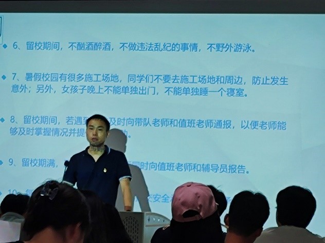 今年暑假,学院有168名学生留校参加学科竞赛的集训和考研复习,为了给留校学生营造良好的学习氛围,6月20日上午,学院组织召开了全体留校学生安全主题教育大会,学院党总支书记唐志文,副院长彭浩,以及各项目负责老师、辅导员出席。会上,唐书记做了重要讲话,学院安全专干陈辉湘老师对留校学生进行了安全教育,要求留校学生提高安全意识,服从学校管理;暑假学校有多栋教学楼和宿舍楼进行提质改造,陈老师特意强调学生不要靠近施工场地,加强安全防范。