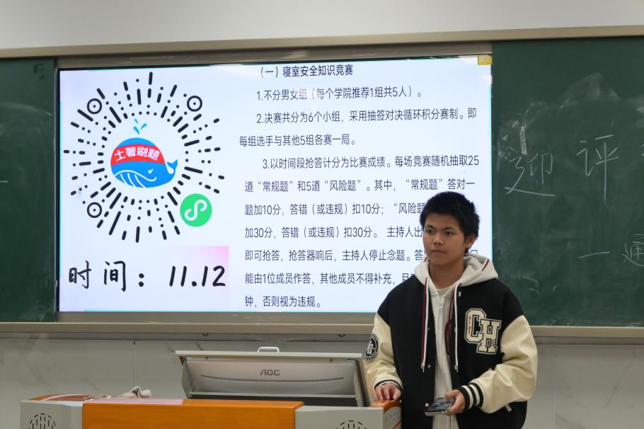 2023年11月12日星期日晚7点,信息与机电工程学院进行了线上寝室安全知识竞赛,这是学院在学生寝室管理工作中的一项重要举措,旨在增强学生对寝室安全的认识,培养他们自觉维护寝室安全的意识和能力。