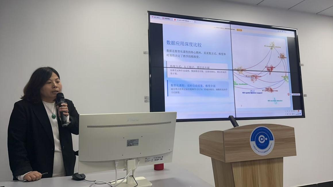在理论阐释过程中,梅老师穿插播放了西北工业大学张莹教授的专家视频,以直观生动的方式降低了复杂理论的理解门槛,使教师们得以“站在巨人肩膀上”快速提升。为使理论尽快落地,黄胜主任结合《Python程序设计》课程,现场演示了如何构建知识图谱、实施过程性评价与反馈,为与会教师提供了一个清晰可见、可立即上手的实践范本,极大地鼓舞了教师们的创新与实践热情。
