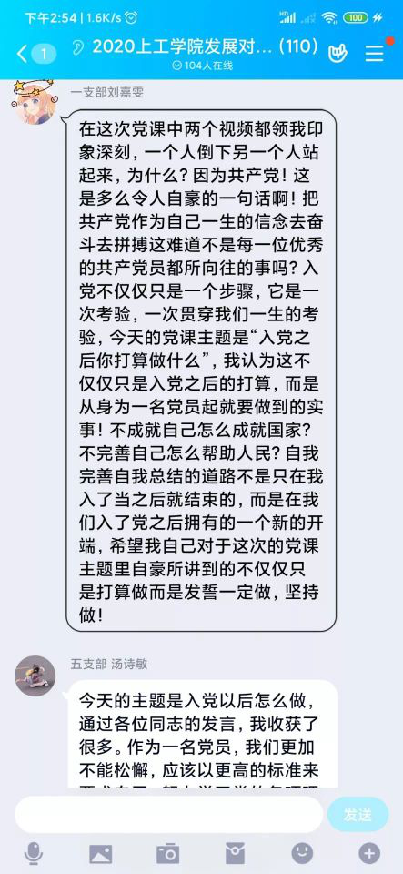 4月15日中午12点,我院发展对象培训班以线上学习的方式开展了本学期第二次集中辅导,本次辅导课堂的主题是“入党以后打算怎么做”,本次会议分别由黄锦阳、苏宏宇、申金阳同志主持,2020上半年发展对象培训班全体成员参与。