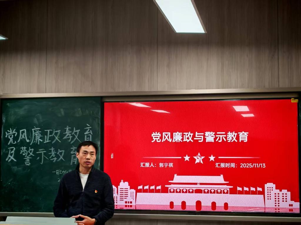 2025年11月13日,为强化师生廉洁自律意识,筑牢拒腐防变思想防线,湖南涉外经济学院信息与机电工程学院党总支组织开展党风廉政教育暨警示教育活动,各支部成员齐聚课堂,通过专题宣讲、案例视频学习等形式,推动廉洁教育入脑入心。