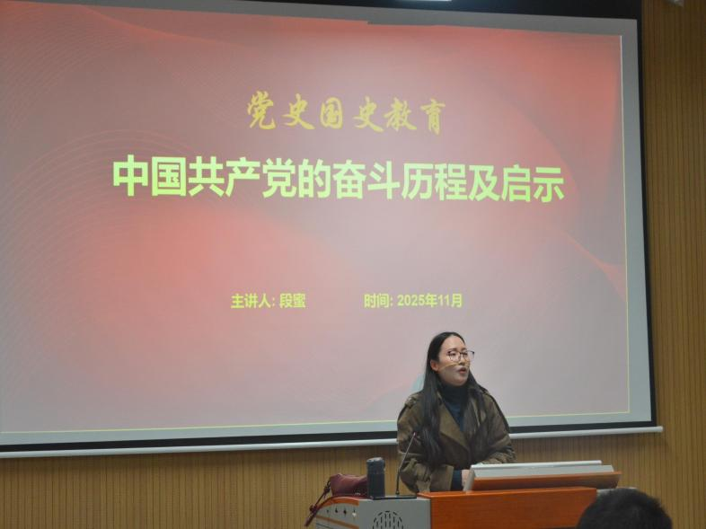 接着,段蜜老师强调,党的百年奋斗历程是一部矢志践行初心使命、筚路蓝缕奠基立业、创造辉煌开辟未来的历史。她结合历史案例与时代要求,从坚持党的领导、坚守人民立场、勇于自我革命、坚持理论创新等方面解读了党的奋斗历程带来的深刻启示,引导预备党员从历史中汲取智慧和力量。