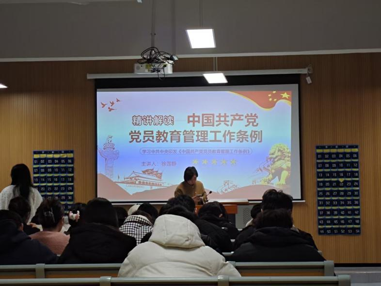 为落实新时代党建要求,加强党员队伍建设,规范党员教育管理全流程,推动《条例》精神落地见效。2025年11月19日晚19时,信息与机电工程学院在十二教409教室举行以“学习《中国共产党党员教育管理工作条例》”为主题的党课学习会议。本次会议由信息与机电工程学院徐莲静老师主讲,我院全体预备党员参加本次党课学习。