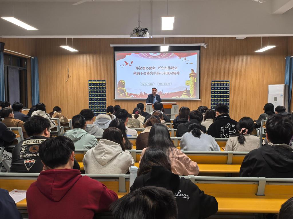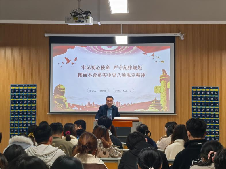为强化预备党员的政治素养与党性修养,推动中央八项规定精神和二十届四中全会精神入脑入心,2025年11月12日晚19时,信息与机电工程学院在12教309教室举办“中央八项规定精神学习教育 二十届四中全会精神解读”专题党课学习。本次党课学习由邝继红老师主讲,我院全体预备党员参与学习。