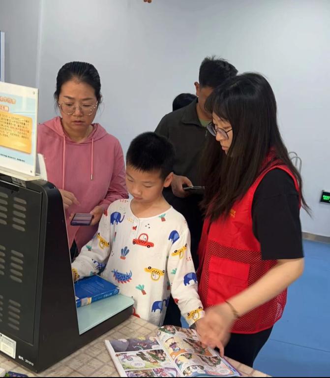 在图书整理环节,志愿者们严格按照图书馆的编码顺序和图书高低尺寸要求,耐心细致地将阅览桌上、回收车中的书籍逐一核对、分类,并准确放回对应书架。这不仅考验着他们的细心与耐心,更展现了当代大学生严谨务实的工作作风。面对部分读者,尤其是老年读者和小朋友在自助借还机操作上遇到的困难,志愿者们主动上前,耐心讲解,一步步演示操作流程,直至读者成功完成借阅。他们热情周到的服务,赢得了在场读者群众们的连连称赞。