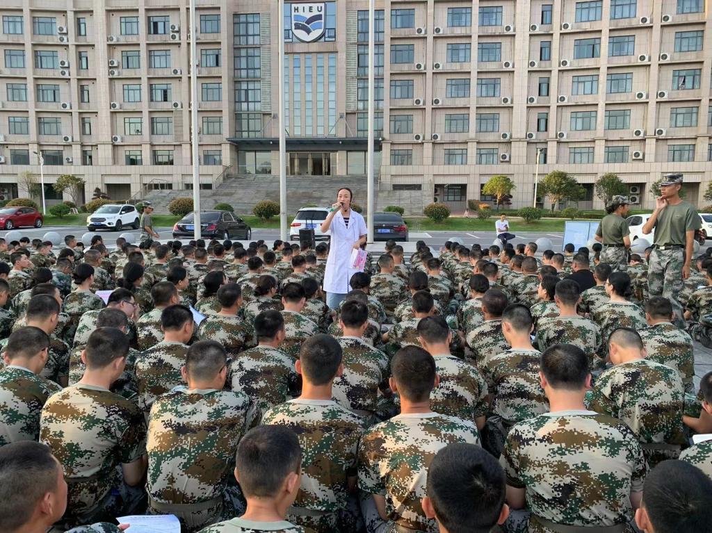 为了提高大一新生的卫生意识和健康保健知识,在校园生活中建立良好的卫生习惯奠定基础。新生军训期间,信息与机电工程学院于2023年9月19日在北门广场开展了一场卫生知识讲座。