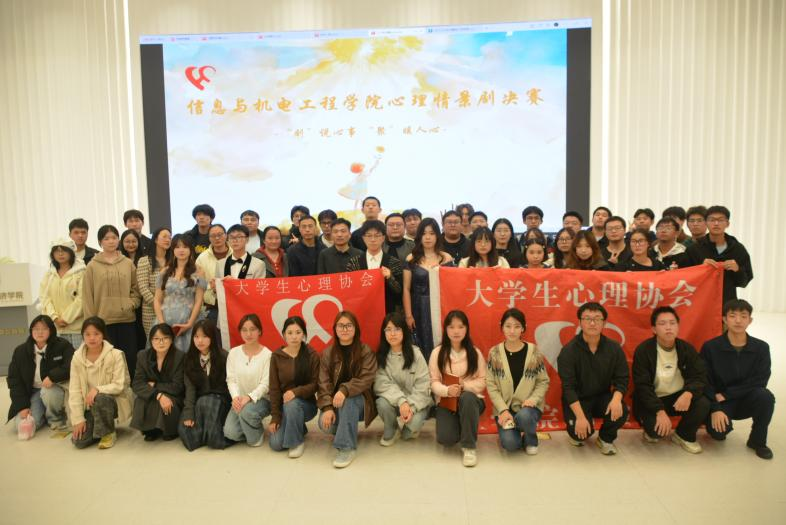 2025年12月1日晚,信息与机电工程学院于学术讲堂举办“剧说心事,聚暖人心”心理情景剧决赛,学院党总支书记杨建波、副书记吴彬,心理协会指导老师左春华、刘家颐及辅导员、学生代表参与活动。