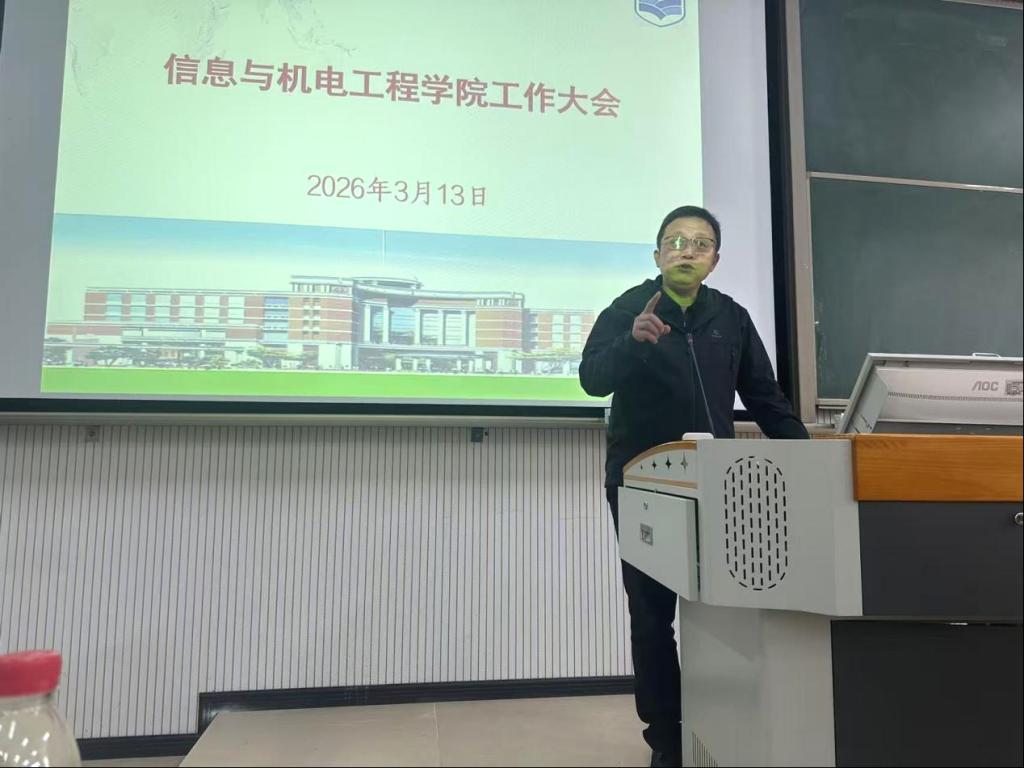 3月13日中午,信息与机电工程学院召开全体教职工会议,专题部署招生就业、教学科研及党建与业务融合等重点工作。学校常务副校长陈斌、副校长兼学院院长褚颜魁、招生就业处处长涂乃天出席会议,学院全体教职工参会,学院党总支书记杨建波作会前动员。