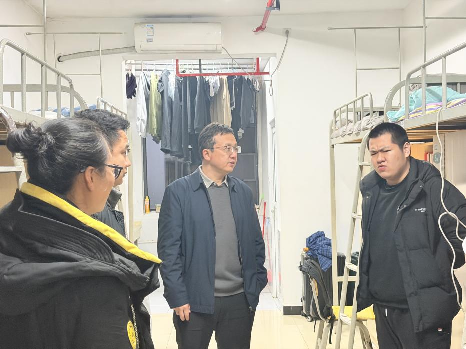 调研中,褚颜魁副校长与学生亲切交谈,询问大家对住宿条件的满意度,倾听学生在住宿生活中遇到的问题和诉求。针对毕业生,他重点关注就业进展,详细了解同学们的就业意向、求职进度及求职过程中遇到的困难,鼓励毕业生树立正确就业观,主动求职、珍惜机会,实现个人价值。